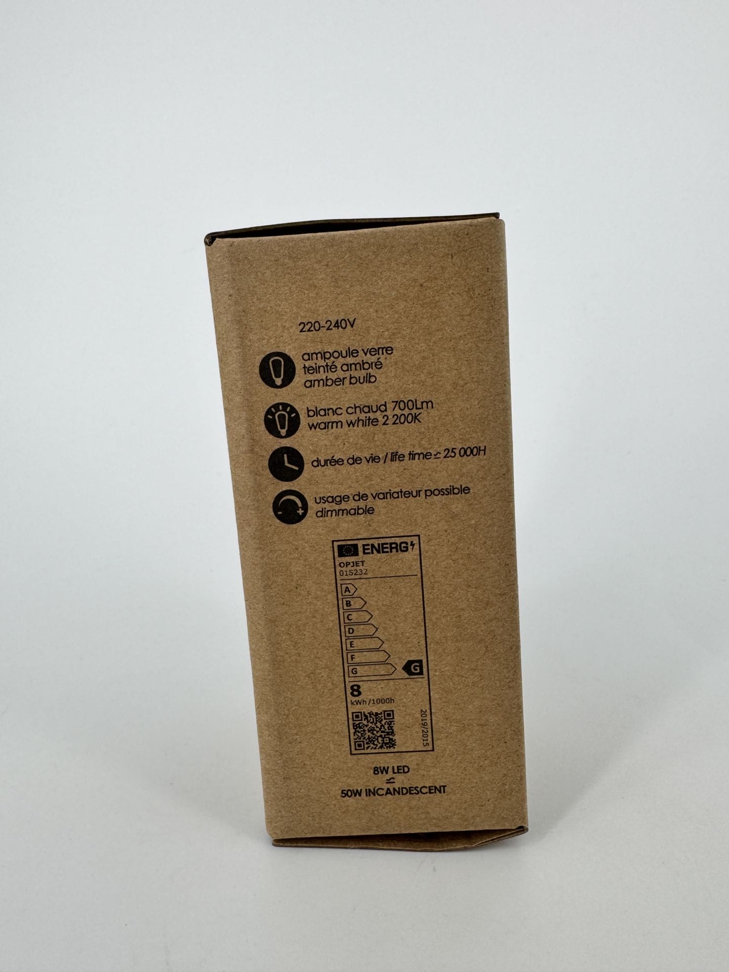 Ampoule E27 Opjet LED filament Bulb 8W 50w incandescent - 220-240V - ampoule verre teinté ambré - blanc chaud 700Lm - usage de variateur possible - Ref 012845