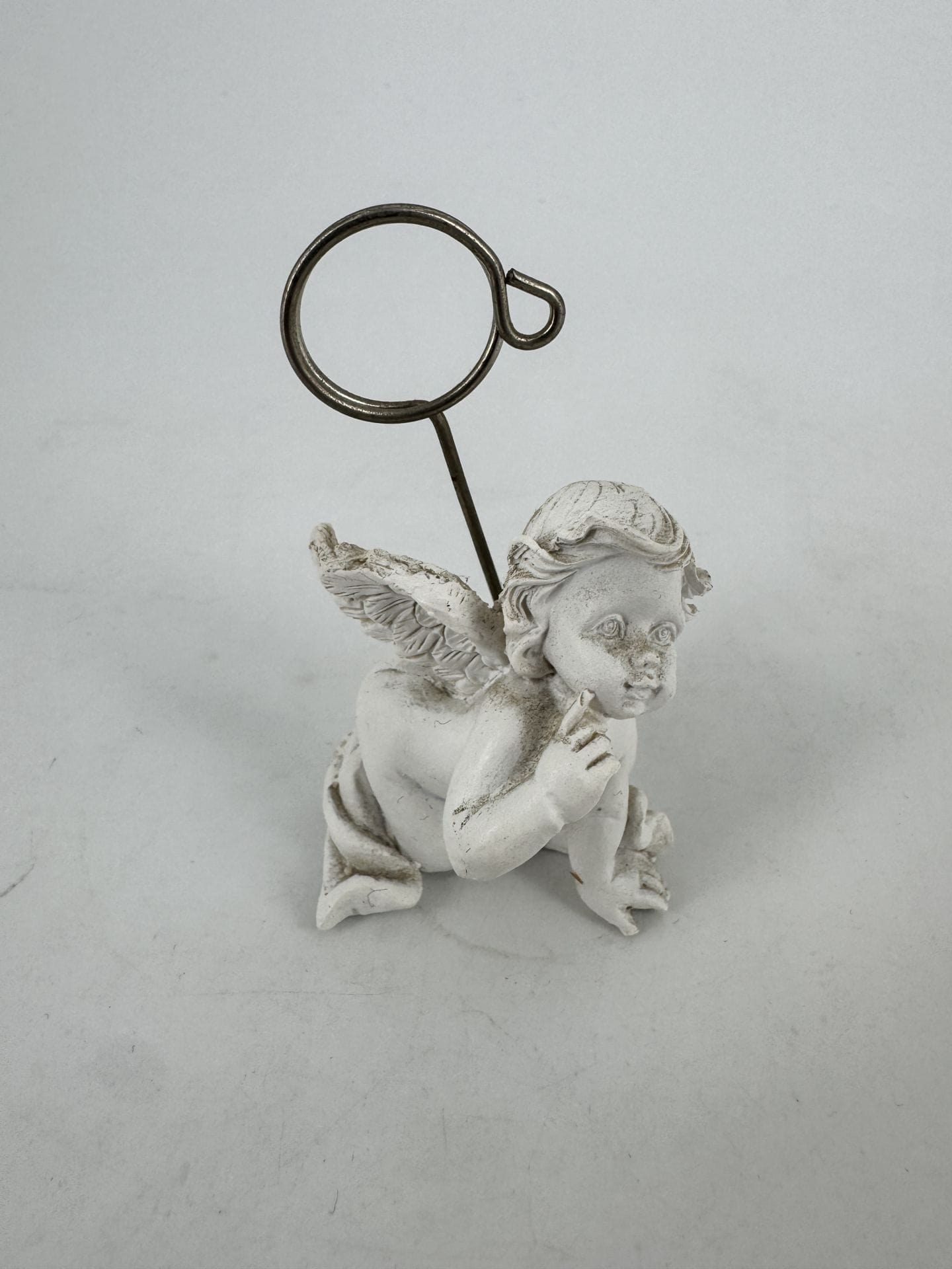 Ange porte-photo permettant d’exposer une image. Quelques traces de saleté visibles. Parfait pour personnaliser une étagère ou un bureau.