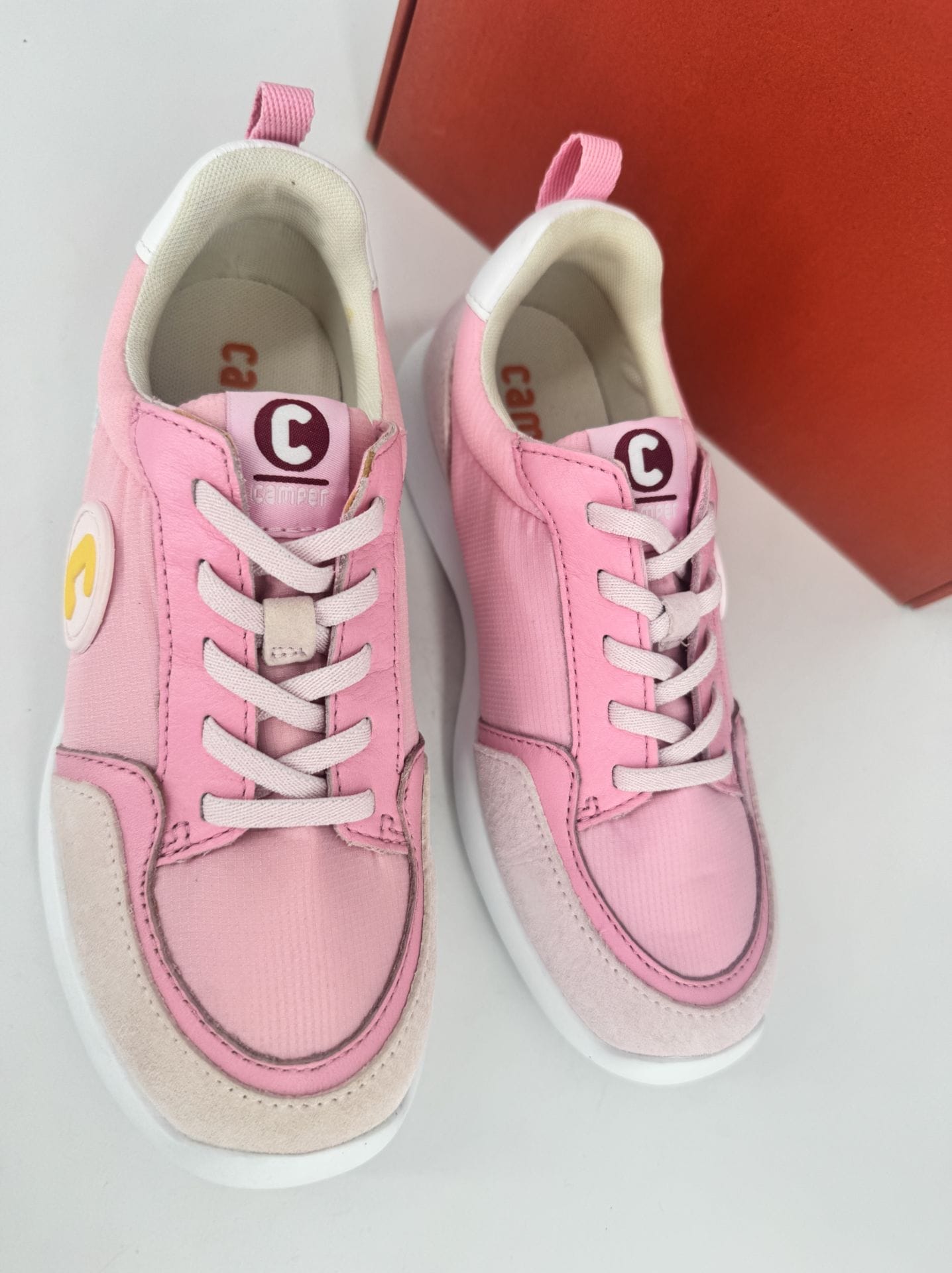 Étiquettes : baskets fille, camper, confort, driftie, école, loisirs, pointure 35, rose et blanc, sneakers​, sport