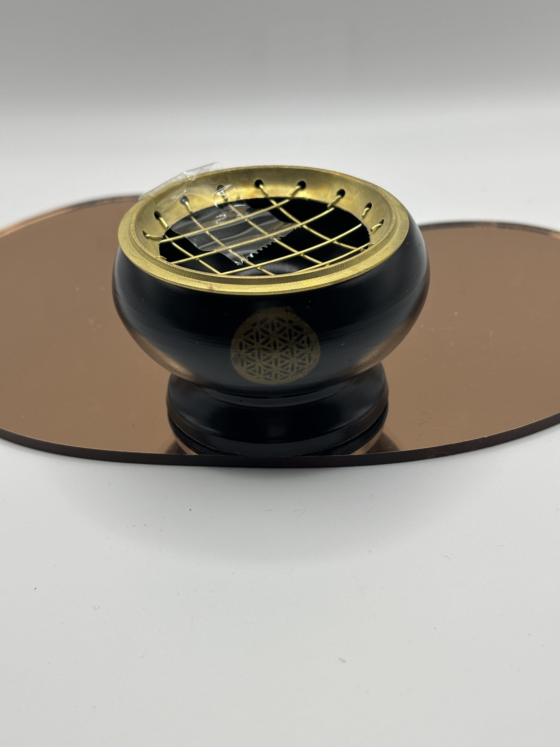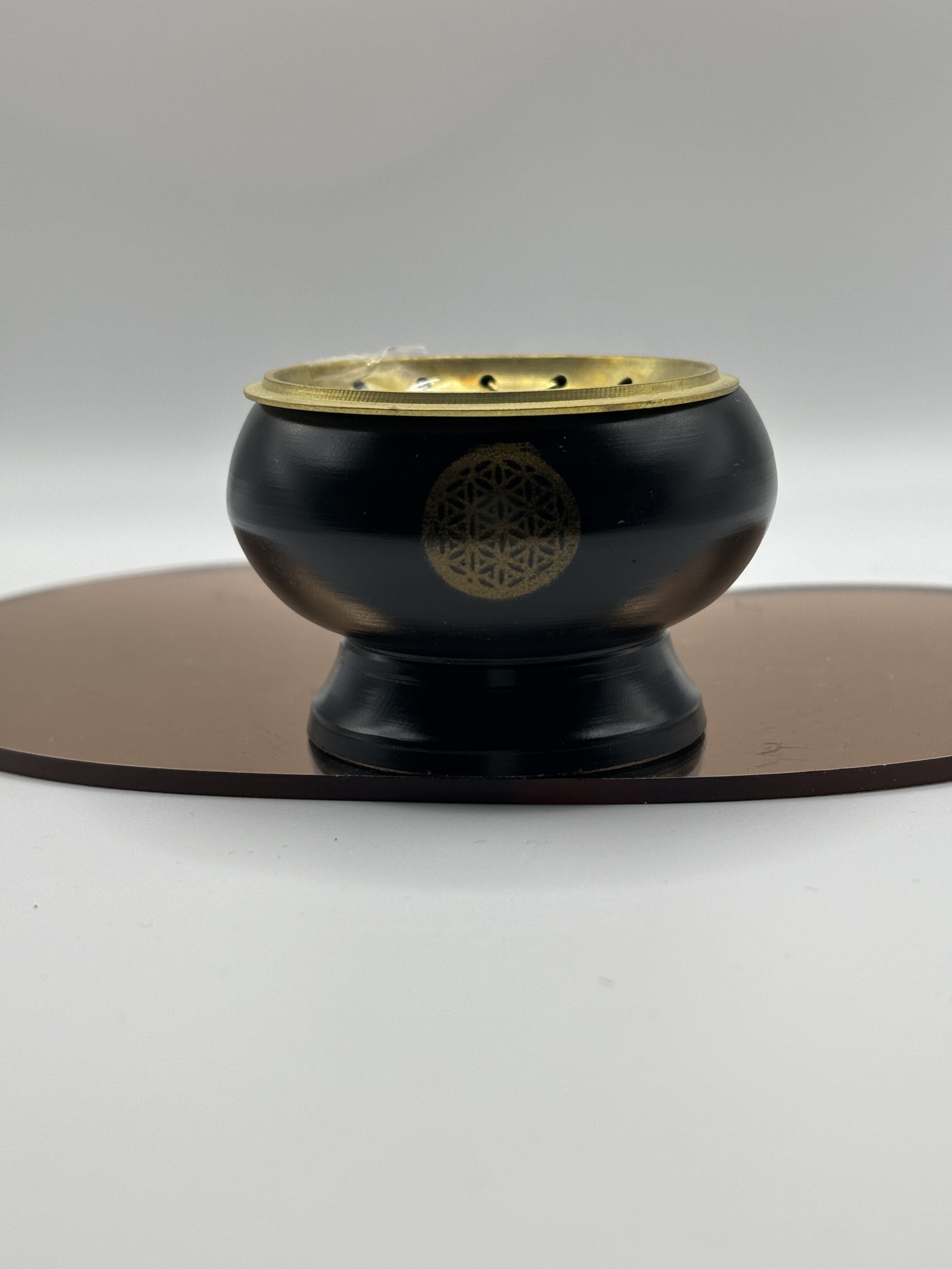 Brûle encens en laiton décoré noir et doré – Fleur de Vie