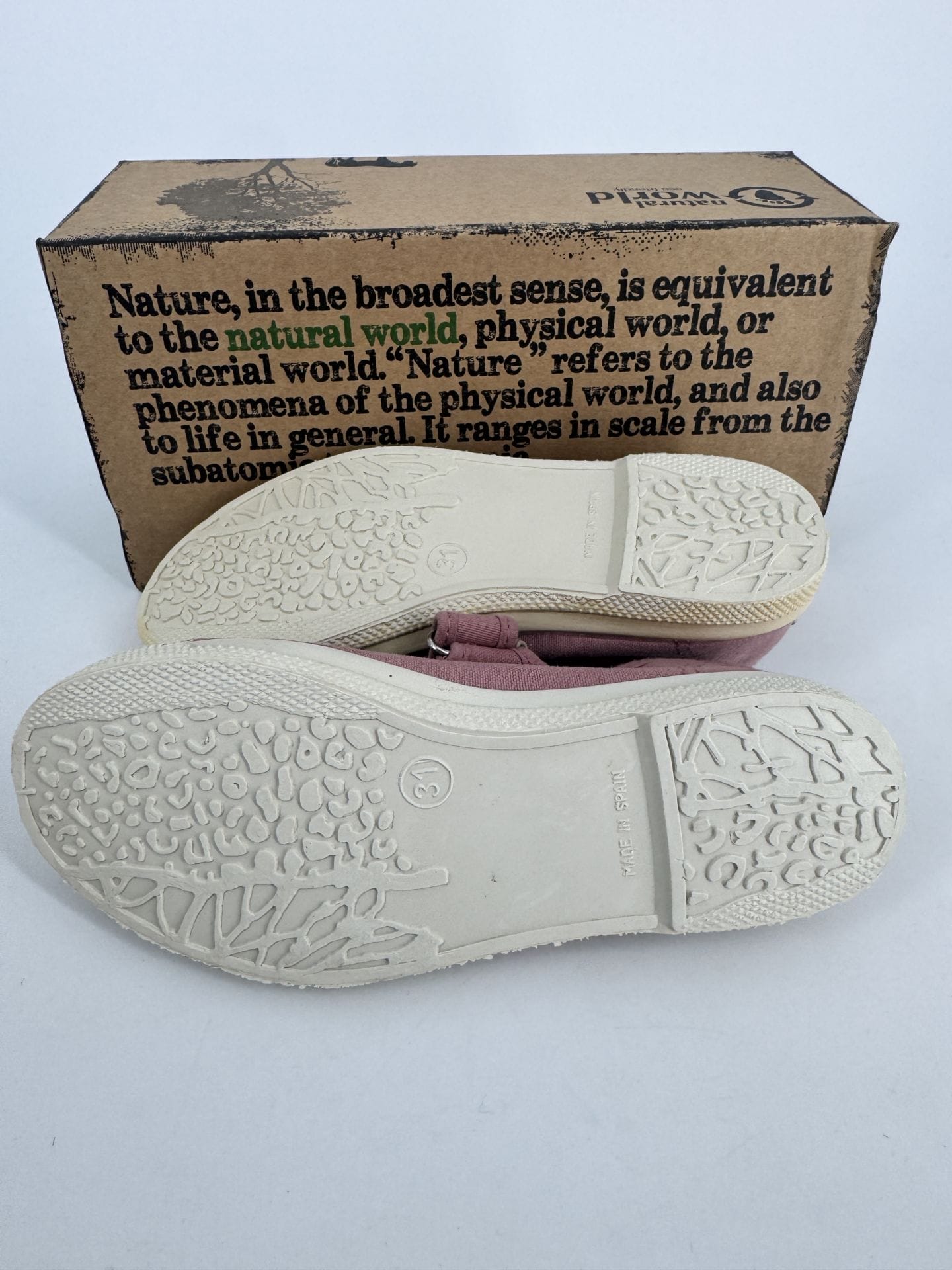 Chaussures enfants sneakers toile à scratch coton bio Natural World 476 552 Rose Ant -Taille 31 La semelle d’une des deux est plus jaune que l’autre