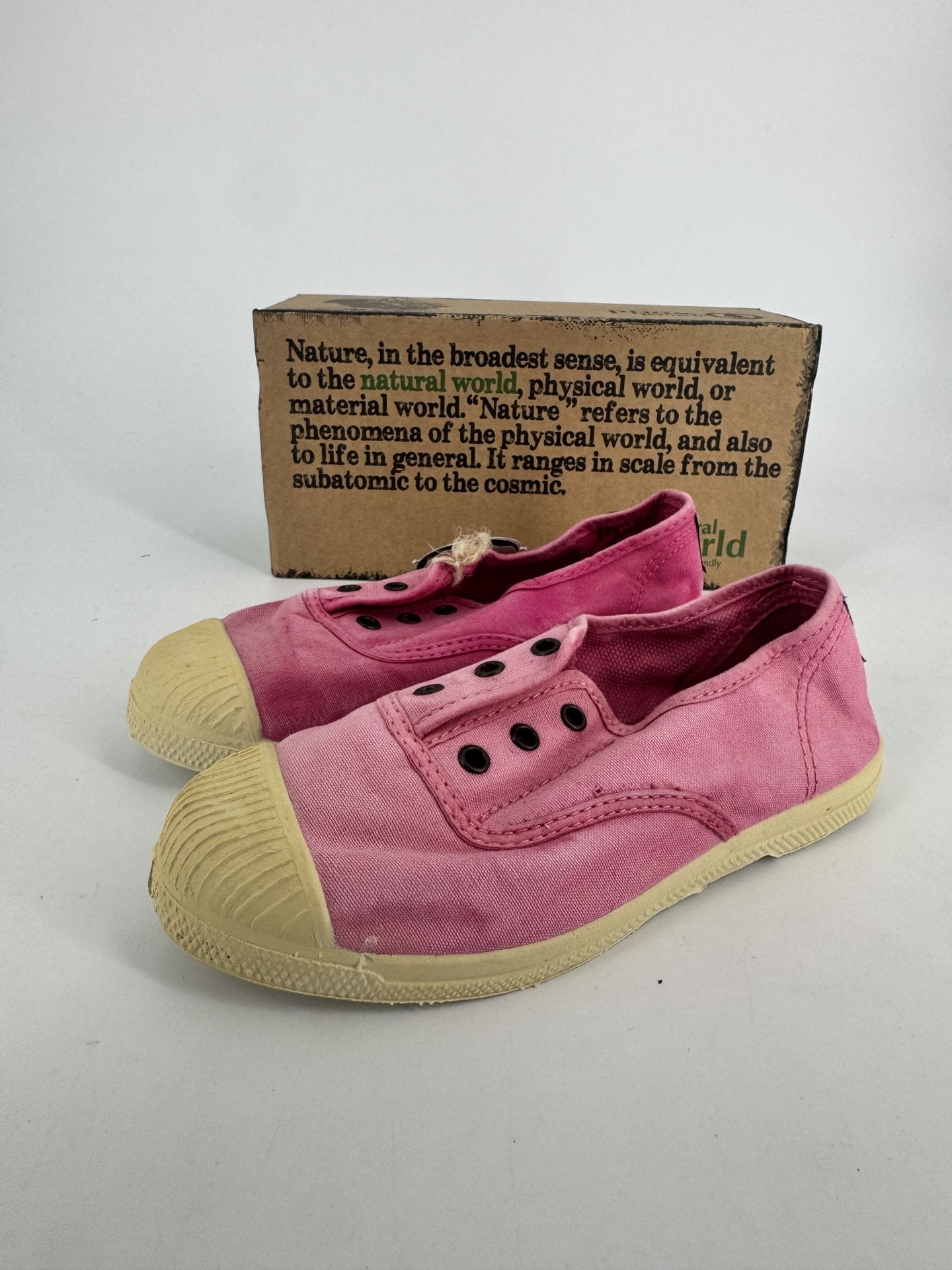 Chaussures enfants sneakers toile élastique coton bio Natural World 470E 612 Fushia Enz – Rose – Taille 28 La semelle d’une des deux est plus jaune que l’autre
