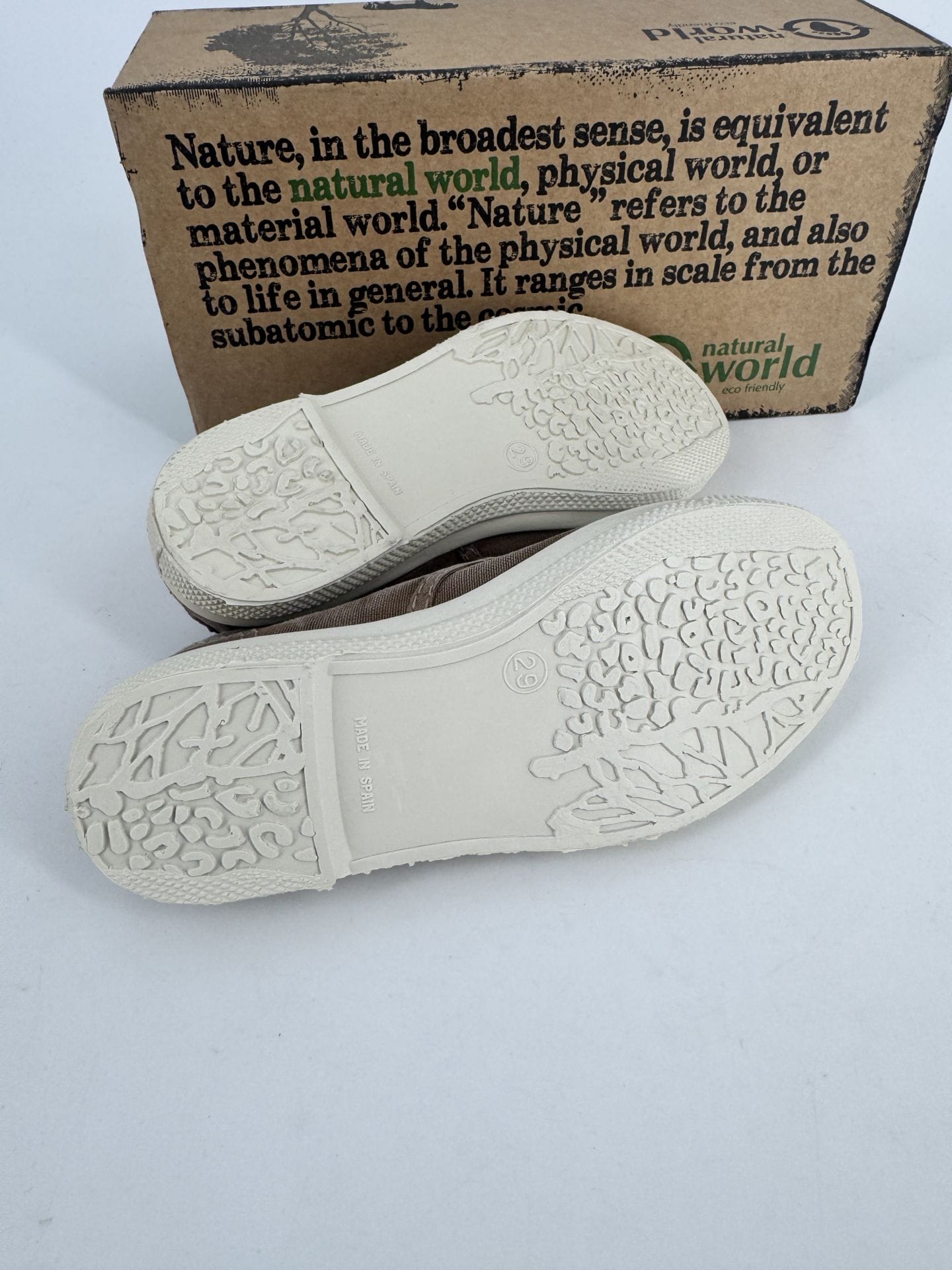 Étiquettes : 470e 621, baskets enfant​, beige enz, coton bio, écologique, natural world, neutre, pointure 29, taupe, toile élastique