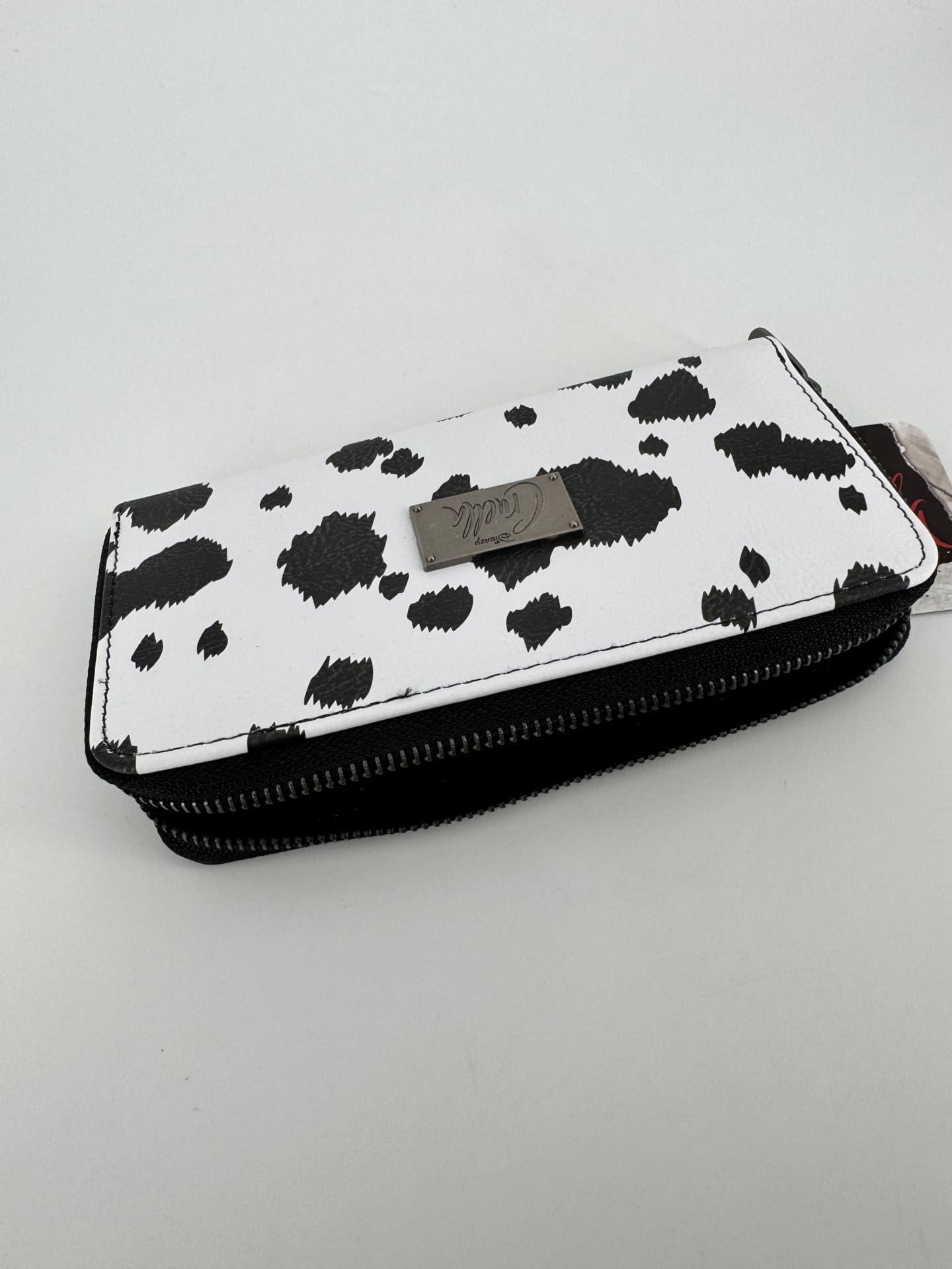 Accessoire officiel Disney « Cruella » (réf 02847) de Karater Mania en polyester 100 % : porte-monnaie et porte-cartes combinés, parfait pour compléter un look fan ou faire un cadeau stylé. Format compact, finition soignée et design vilain-chic assumé.
