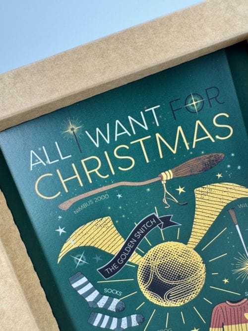 Retourner à la boutiqueCélébrez Noël avec ce cadre kraft vert portant le message ‘All I want for Christmas’. Un cadeau magique et festif pour les fans de Harry Potter, parfait pour ajouter une touche de Poudlard à vos décorations de Noël.