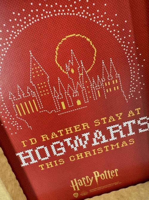 Apportez un peu de magie de Poudlard à vos fêtes avec ce cadre rouge ‘I’d rather Hogwarts this Christmas’, idéal pour Noël.