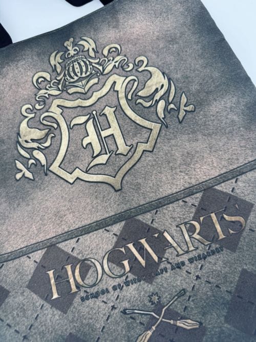 Design inspiré de Poudlard : Ce tote bag arbore un design sobre et élégant, avec des détails rappelant les célèbres symboles de Poudlard, offrant un look chic tout en étant fidèle à l’univers de Harry Potter.