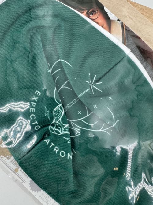Étiquettes : accessoire Poudlard, cadeau fan Harry Potter, goodies Harry Potter, masque adulte, masque en coton, masque Expecto Patronum, masque Harry Potter, masque lavable, masque magique, masque réutilisable, masque tissu adulte, masque vert, protection magique, sortilège Patronus