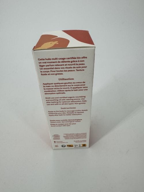 Sa composition 100% naturelle à base de 6 huiles végétales bio (carthame, jojoba, moringa…) nourrit, adoucit et sublime instantanément la peau. Elle contribue ainsi à rétablir l’hydratation de l’épiderme en le préservant contre les signes de vieillissement.