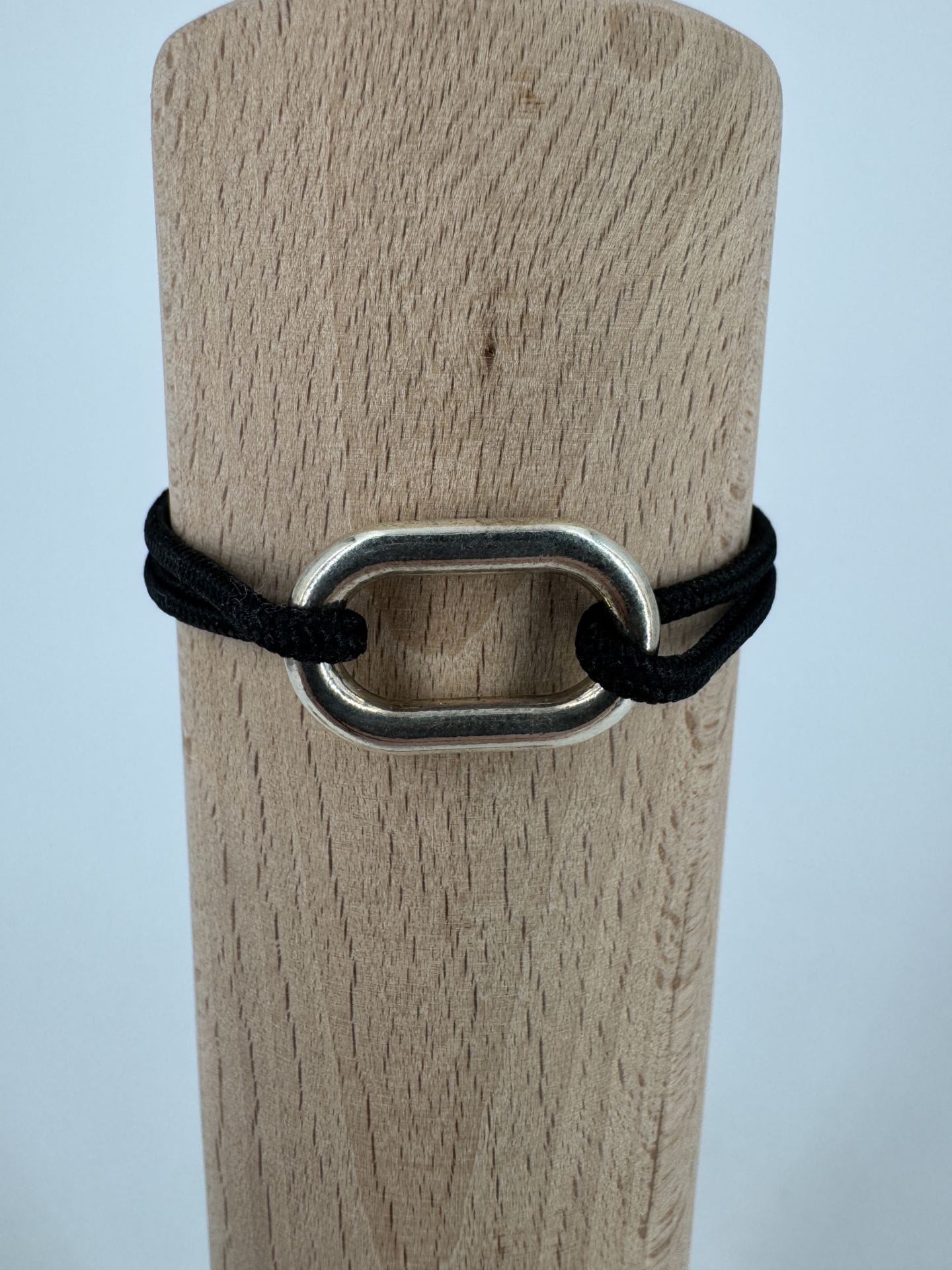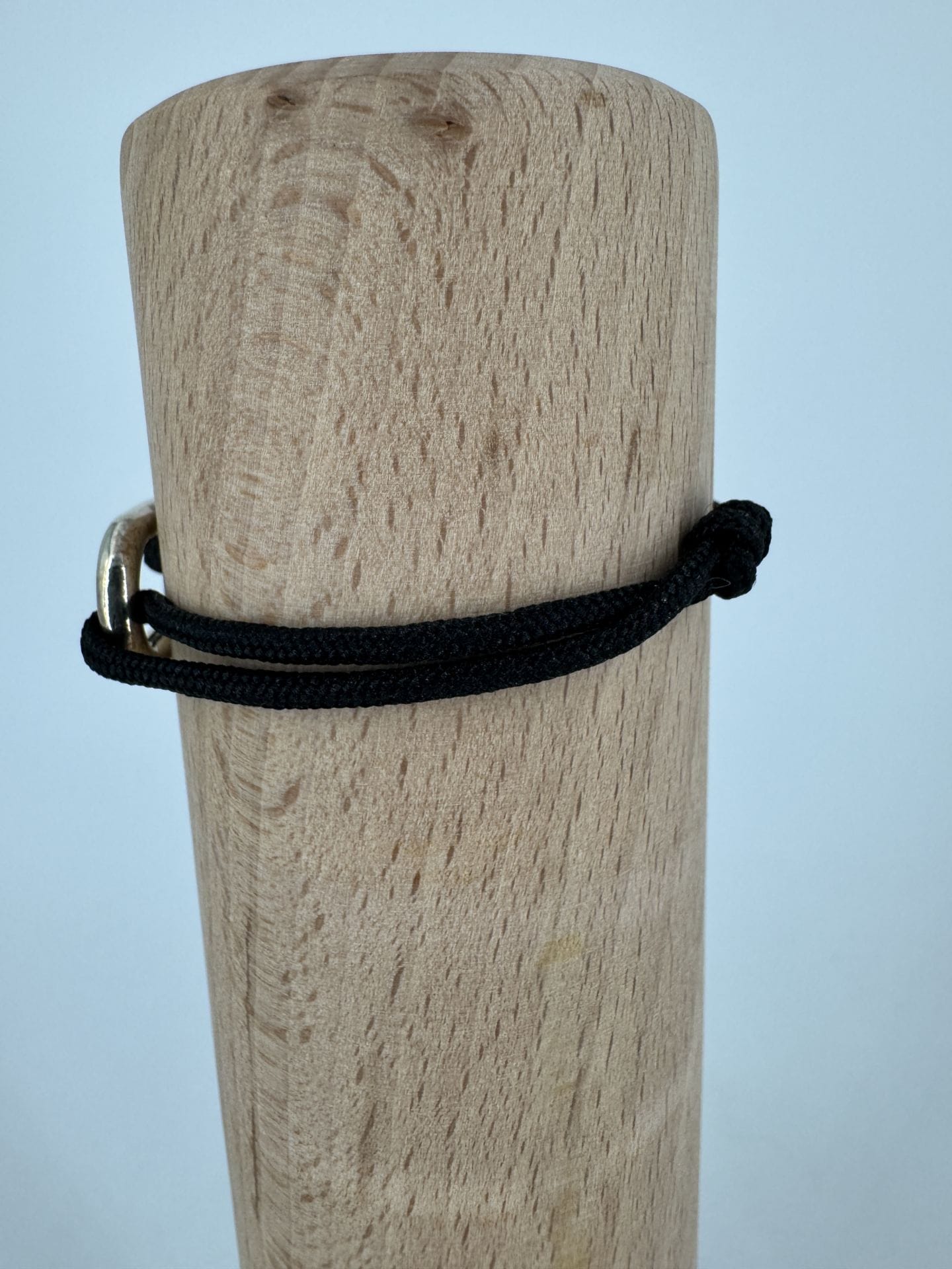 Le vent à la française Bracelet Homme – Oval et plat 2 x 1,5 cm – bracelet noir uni – Résistant à l’eau – taille ajustable – confectionné à la main