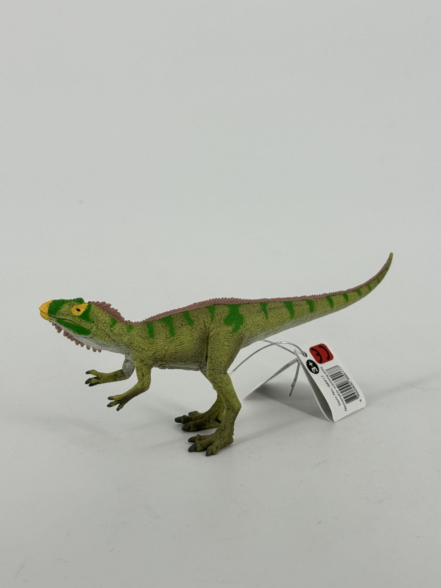 Neovenator était un prédateur au sommet de la chaîne alimentaire, atteignant jusqu’à 10 mètres de long et possédant de puissantes mâchoires capables d’infliger des morsures dévastatrices à ses proies. La figurine représente Neovenator dans une pose dynamique, reniflant l’air à la recherche d’une proie potentielle, mettant en valeur son odorat aigu et son instinct de prédateur.