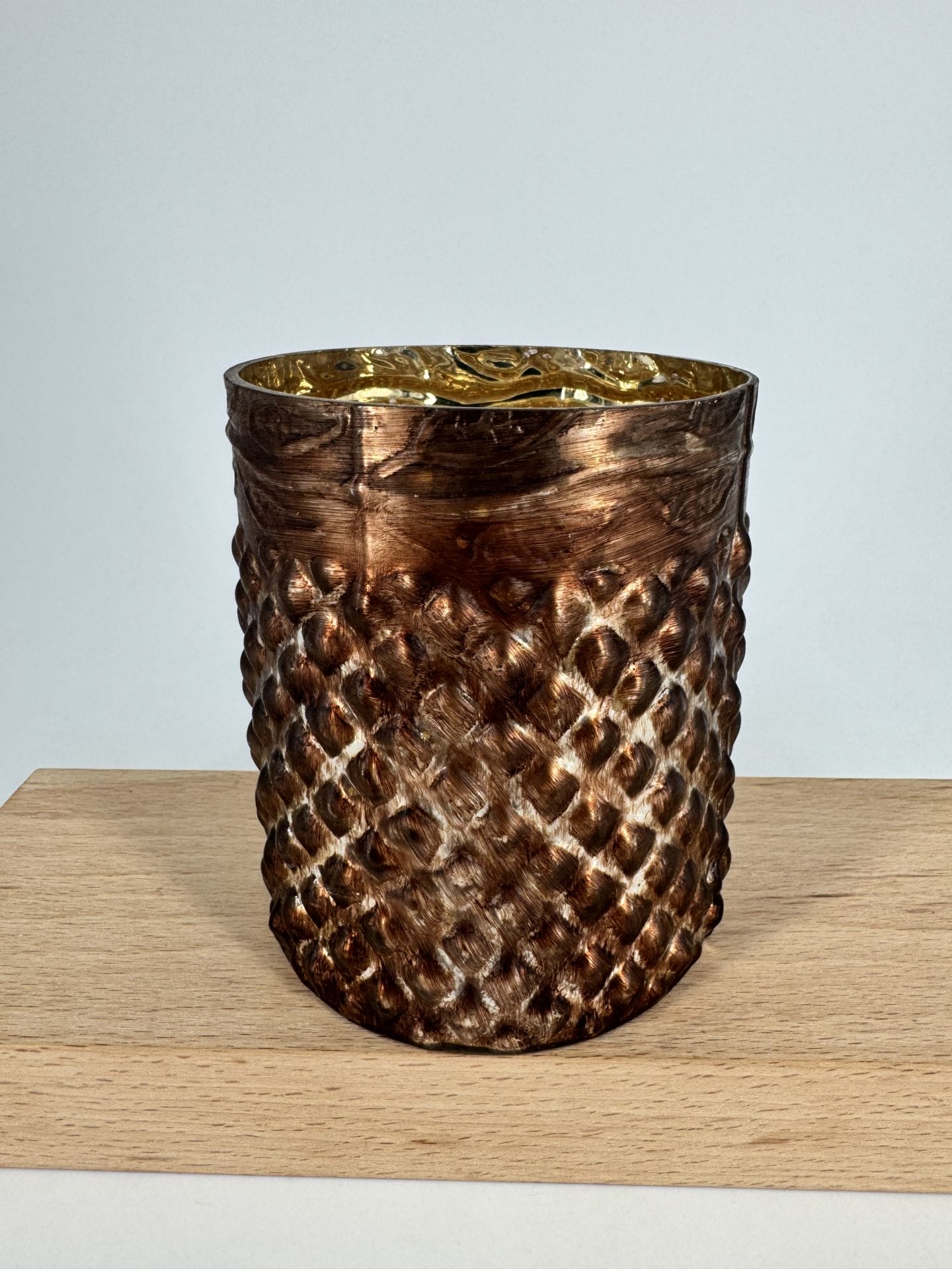 Retourner à la boutiquePhotophore cuivré, une décoration chic et moderne qui apporte une touche de luxe et une lumière chaleureuse à votre intérieur.