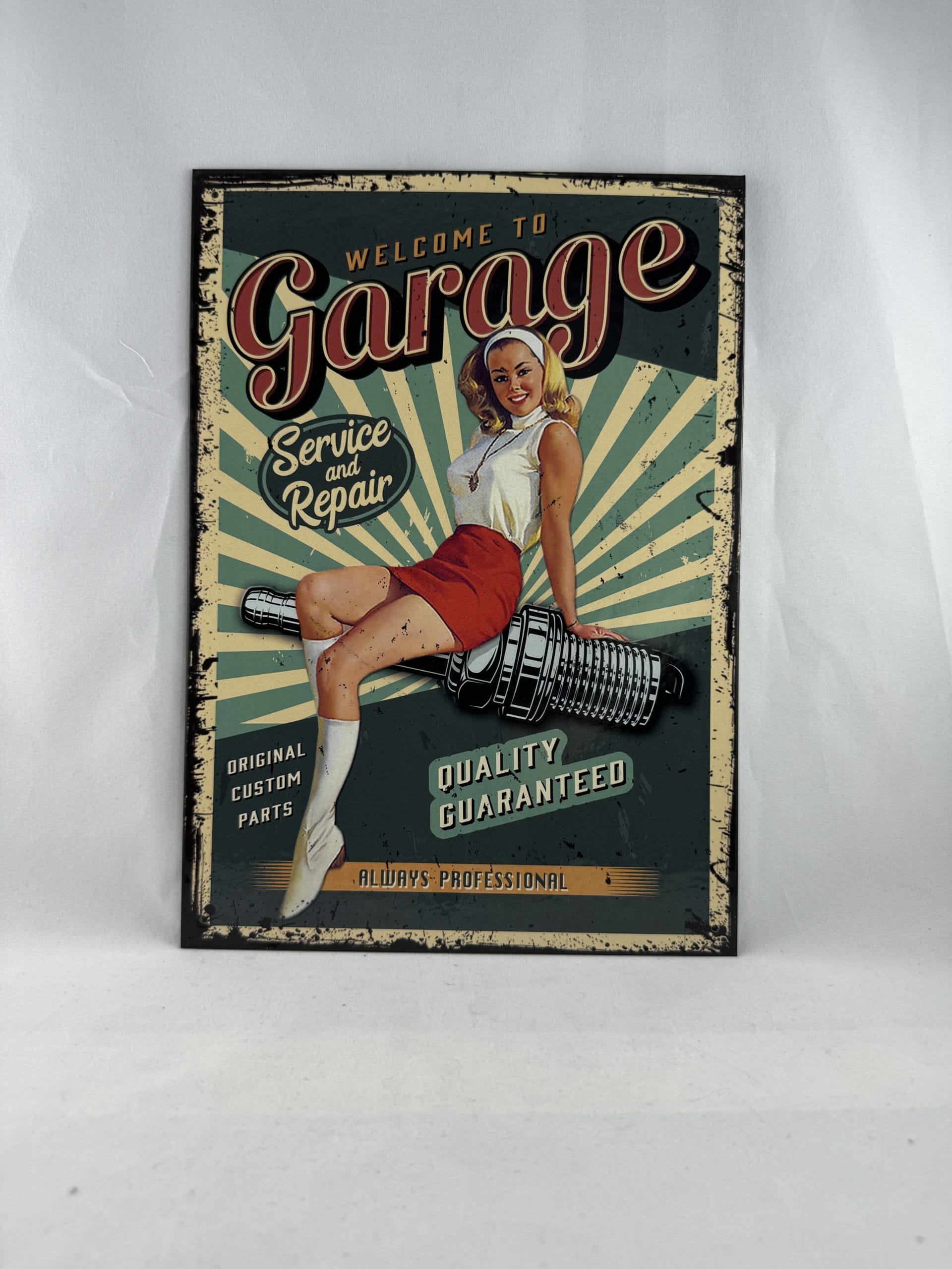 Plaque de style vintage cartonnée Welcome to Garage – Service and Repair – Quality guaranteed – Original custom parts – Always professionnal