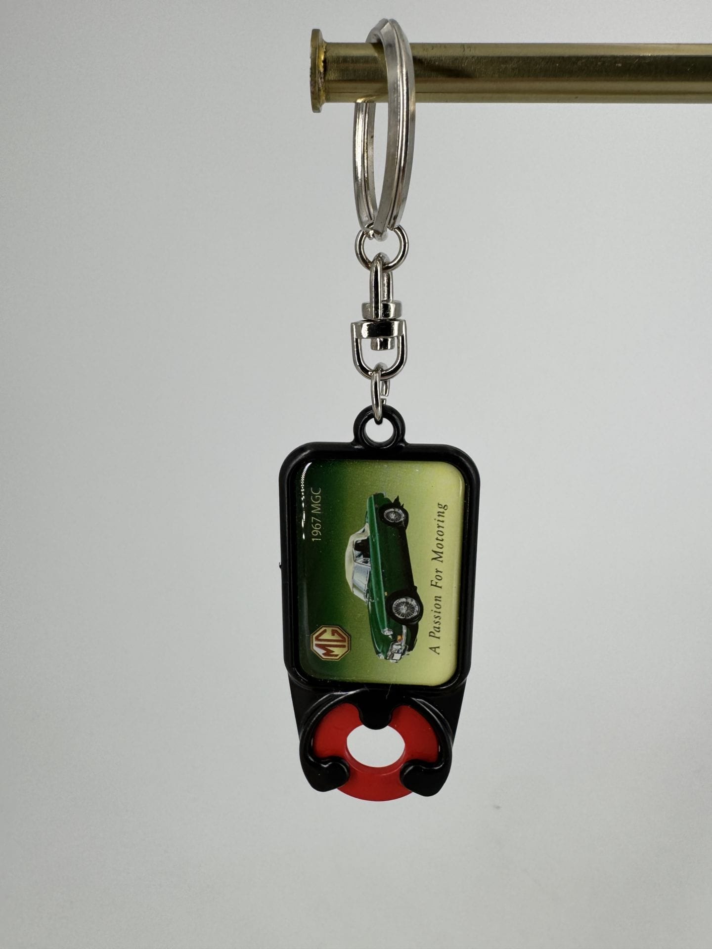 Un porte-clés élégant avec jeton, inspiré de la MG 1967 MGC, pour les passionnés de voitures classiques et de design britannique.