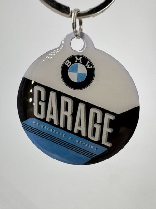 Retourner à la boutiqueUn porte-clés rond au design rétro « BMW Garage » dans le style vintage de Nostalgic Art, parfait pour les passionnés de voitures BMW et de l’art automobile classique.