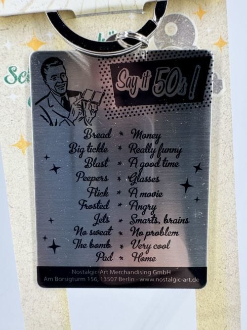 Étiquettes : accessoires décalés, art pop, art rétro, cadeau amusant, cadeau original, design vintage, humour, humour vintage, Nostalgic Art, porte-clés, slogan, style vintage, The Boobs are real, The Smile is Fake, vintage