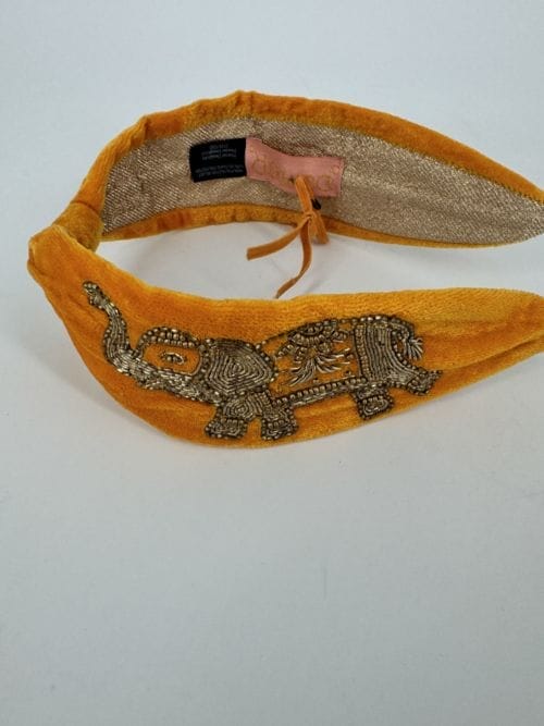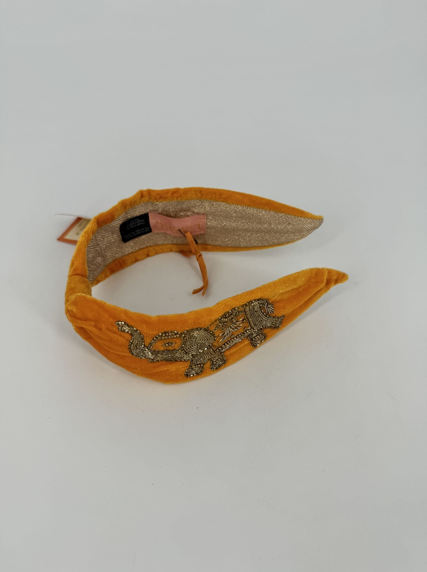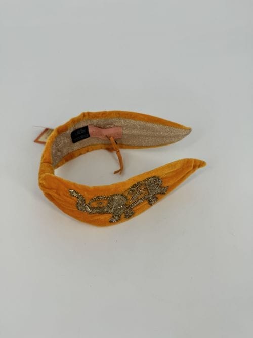 Serre-tête éléphant velours orange Powder, un accessoire unique et ludique qui allie confort et originalité pour une touche de fun à vos coiffures.