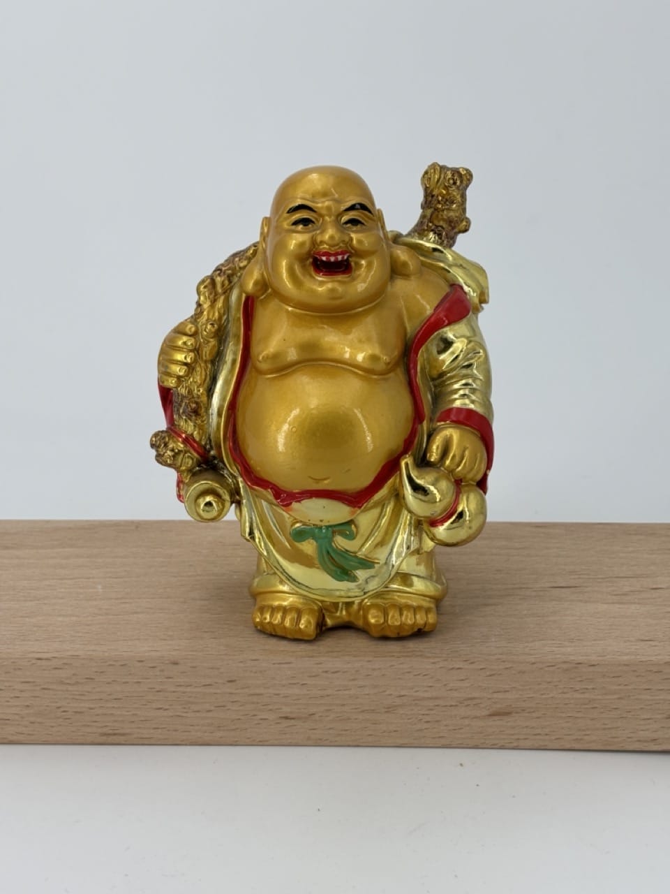 Statue de Bouddha rieur pour la santé Richesse et bonheur . Statuette peinte à la main, quelques défauts sur la peinture.