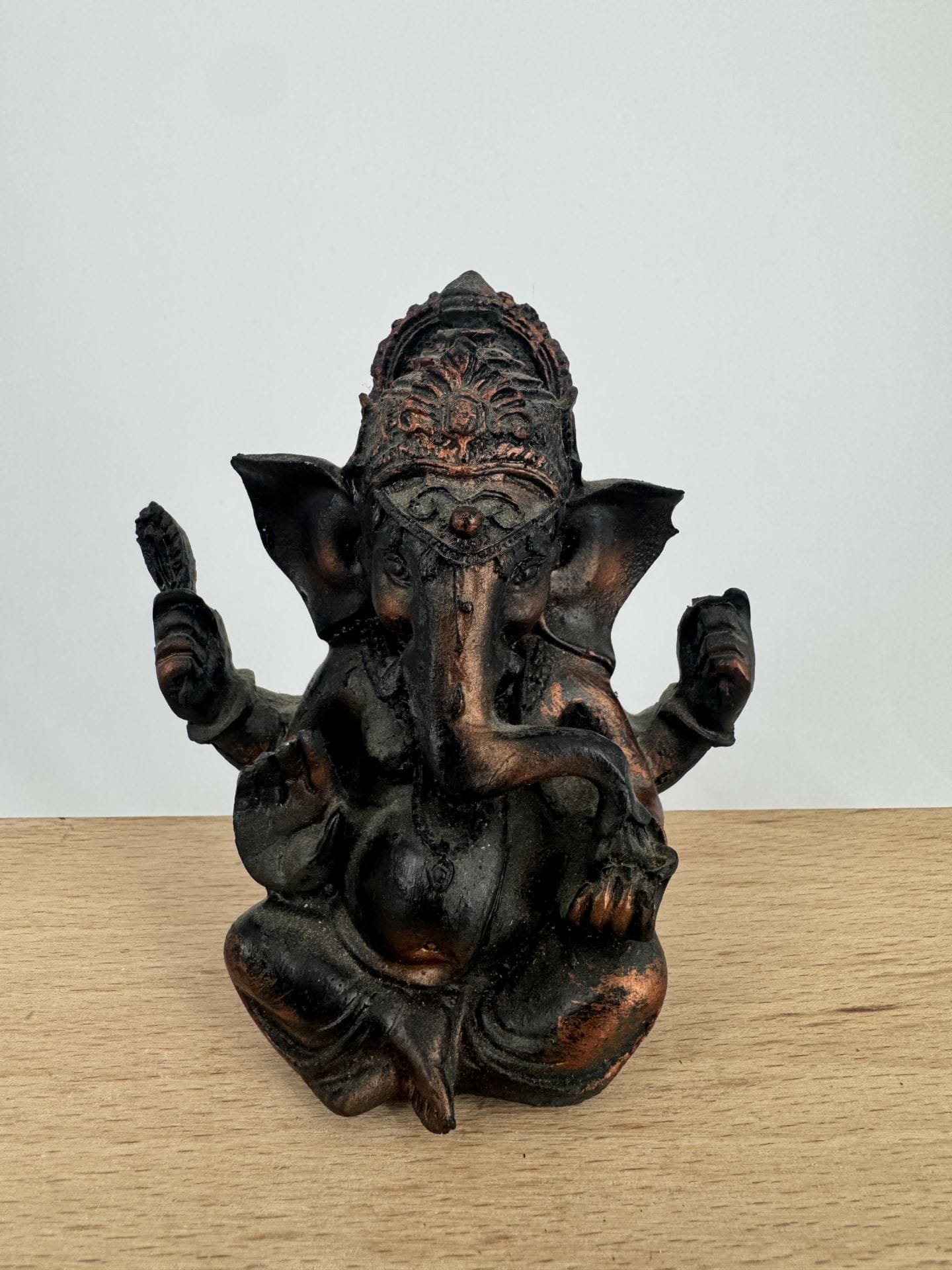 Cette statuette en bois de Ganesh, mesurant 10 cm, dégage une aura de sagesse et de protection. Finement sculptée dans du bois naturel et peinte à la main avec des couleurs vibrantes, elle incarne la divinité hindoue de la sagesse et du succès avec élégance. Ganesh est représenté avec sa tête d’éléphant et ses multiples bras, tenant des symboles de prospérité et de chance. Chaque détail, des ornements sur son corps aux motifs complexes sur sa robe, témoigne du talent artisanal exceptionnel qui a donné vie à cette œuvre d’art sacrée. Que ce soit comme objet de dévotion dans un sanctuaire personnel ou comme source d’inspiration et de protection dans n’importe quel espace, cette statuette de Ganesh apporte une présence divine et une énergie positive à son environnement.