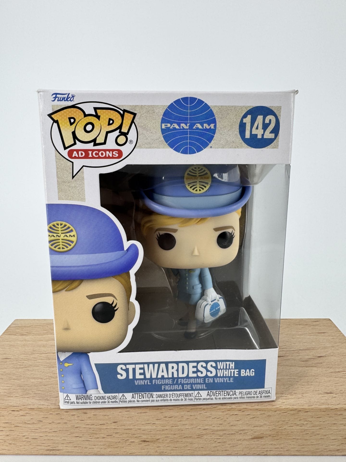 La figurine Funko Pop AD Icons 142 représente une stewardess (hôtesse de l’air) emblématique de la légendaire compagnie aérienne Pan Am, avec son uniforme classique bleu et son sac blanc. Cette figurine rend hommage à une époque révolue, celle des voyages aériens glamour et des hôtesses de l’air qui incarnaient l’élégance et le service de qualité.