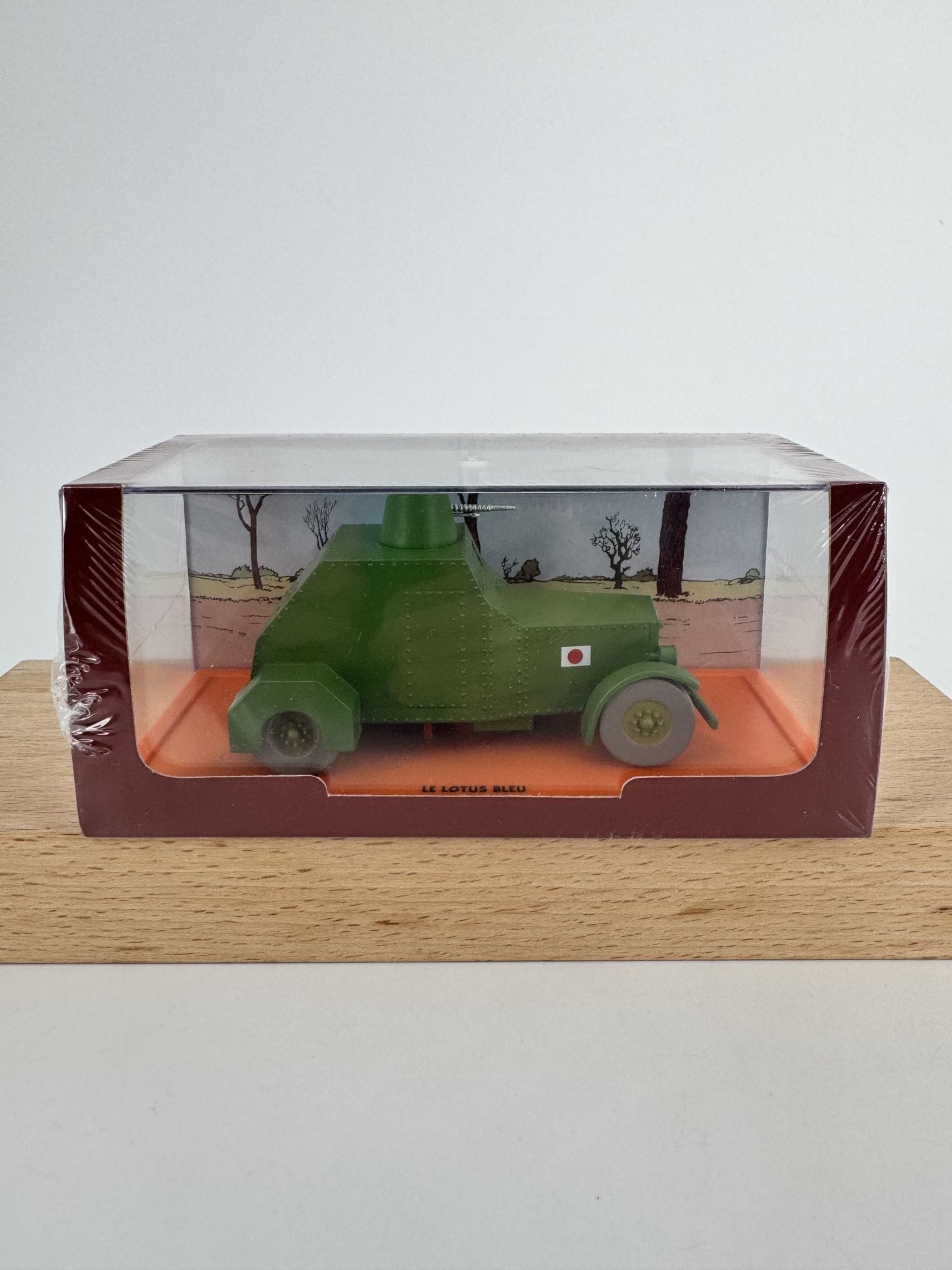 Cette miniature sous licence Moulinsart reproduit fidèlement l’automitrailleuse blindée du tome *Le Lotus Bleu*. Référence 2528023, sortie 2013. Pièce de collection pour amateurs d’univers Tintin, parfait pour décor ou vitrine.270