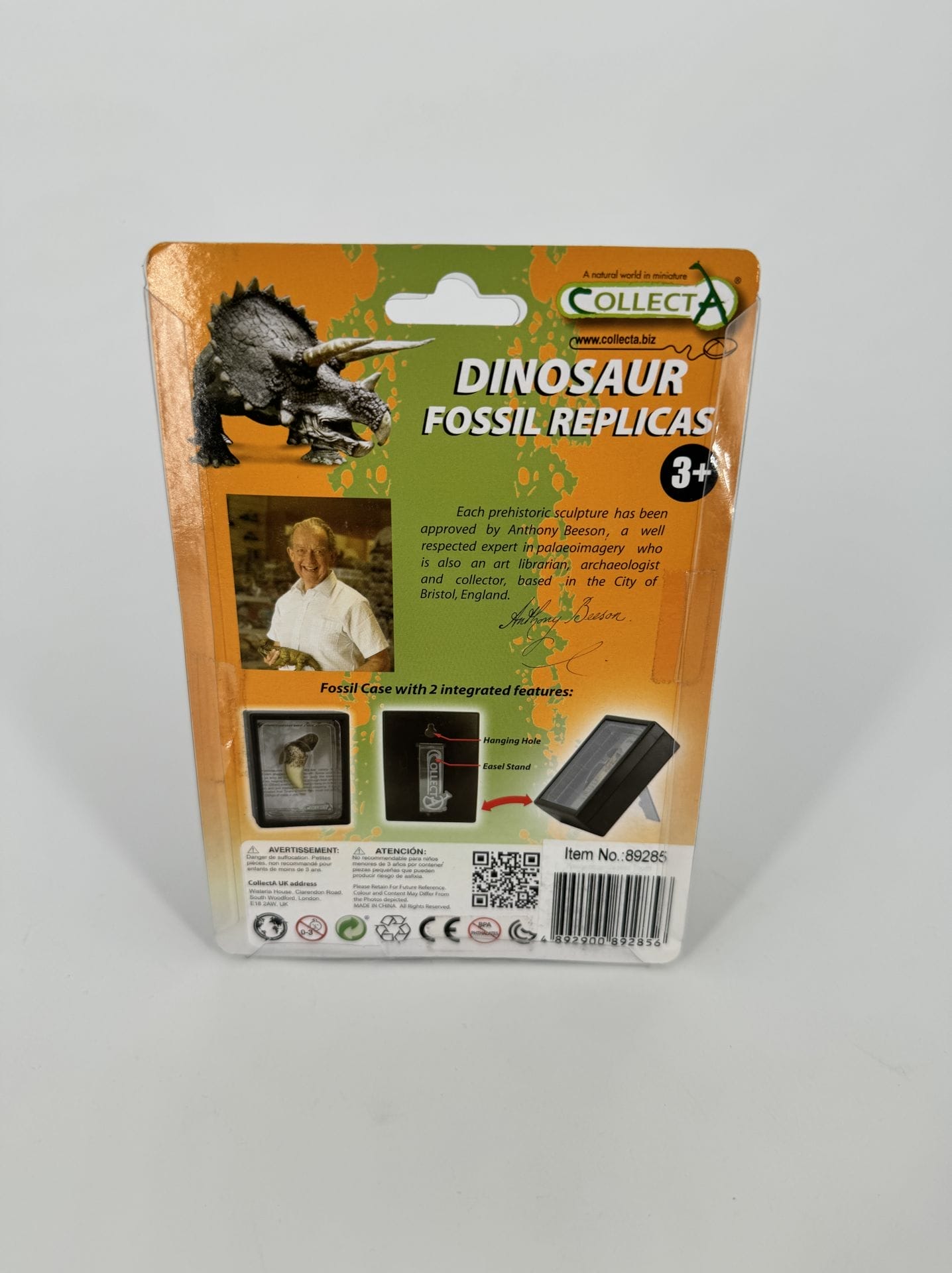 Ces répliques de fossiles CollectA sont livrées dans leur propre vitrine de fossiles en plastique et acrylique. La vitrine possède deux caractéristiques intégrées : Un trou de suspension pour un montage mural et un chevalet dépliable pour une présentation sur une étagère.